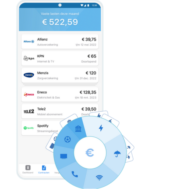De app biedt een paar hoofdonderdelen. Ten eerste geeft het in een dashboard je vaste lasten weer. Je ziet hoeveel lopende contracten je hebt en welke kosten je maakt. Bij het opgeven van de contracten is er ook de mogelijkheid om bestanden bij te voegen, zodat je de originele documenten ook bij de hand hebt.