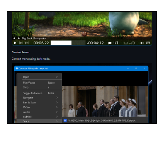 De speler valt vooral op door de no-nonsensaanpak en het flinke aantal instelmogelijkheden. Je kunt de speler bedienen op basis van scripts en commando’s. Dit maakt de speler niet voor iedereen geschikt: afhankelijk van je ervaring en kennis is er een leercurve om ermee aan de slag te gaan. De door ons bekeken Mpv.net-variant is uitgevoerd met een gebruikersinterface en daarmee prettiger in het gebruik. Via de Config Editor kun je de verschillende instellingen aanpassen, zonder dat je hiervoor handmatig de configuratiebestanden moet bijwerken. Tijdens het afspelen zelf kun je gebruikmaken van het contextmenu van de rechtermuisknop. Hier kun je zaken als audio- en videospoor kiezen en eventuele ondertiteling activeren. Op de Github-pagina van de makers vind je bovendien uitgebreide documentatie over het gebruik van Mpv.net.